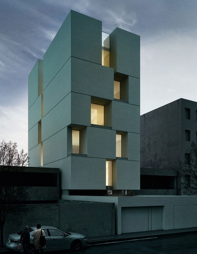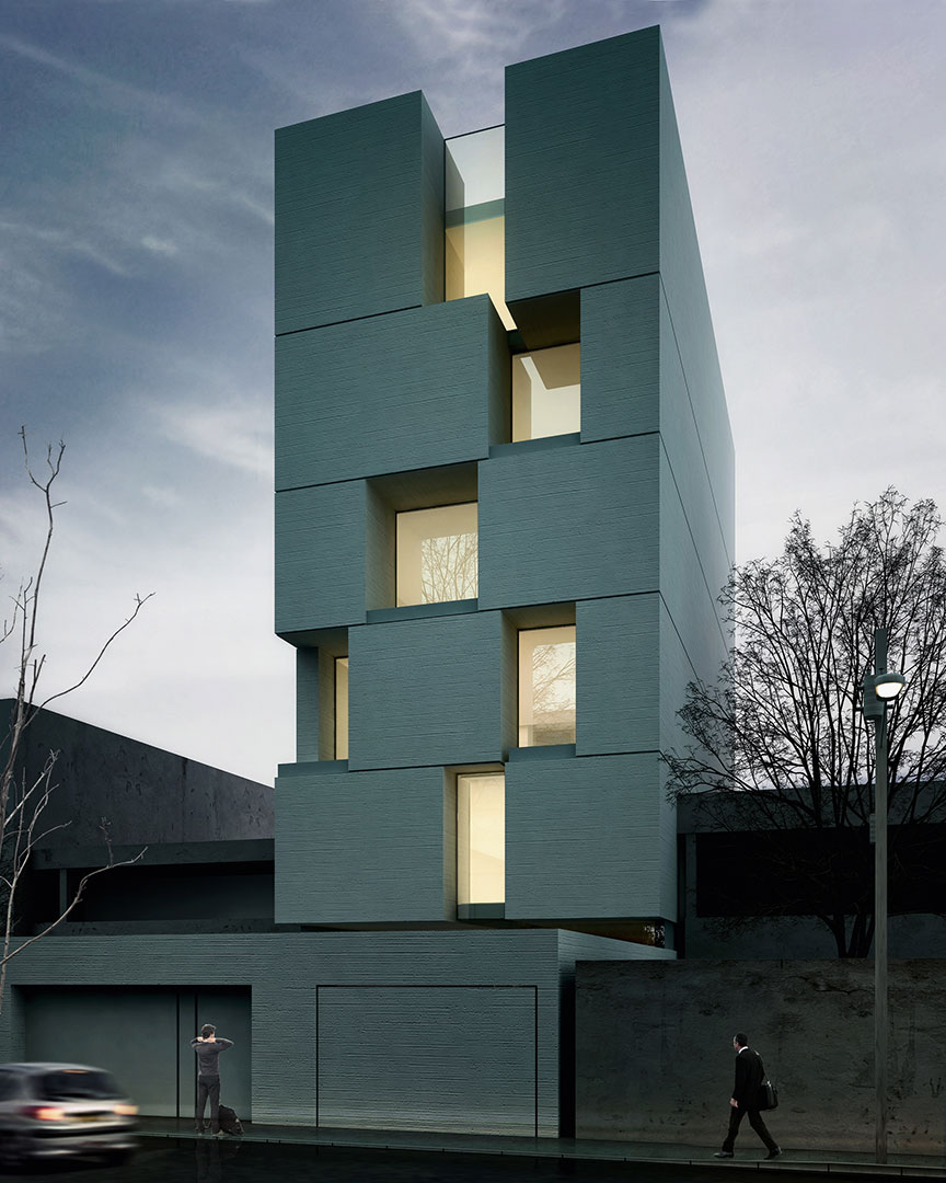This project reconsiders the common infill building pattern, where the yard and building are separate. Instead, it adopts a central courtyard inspired by traditional houses in Iran.